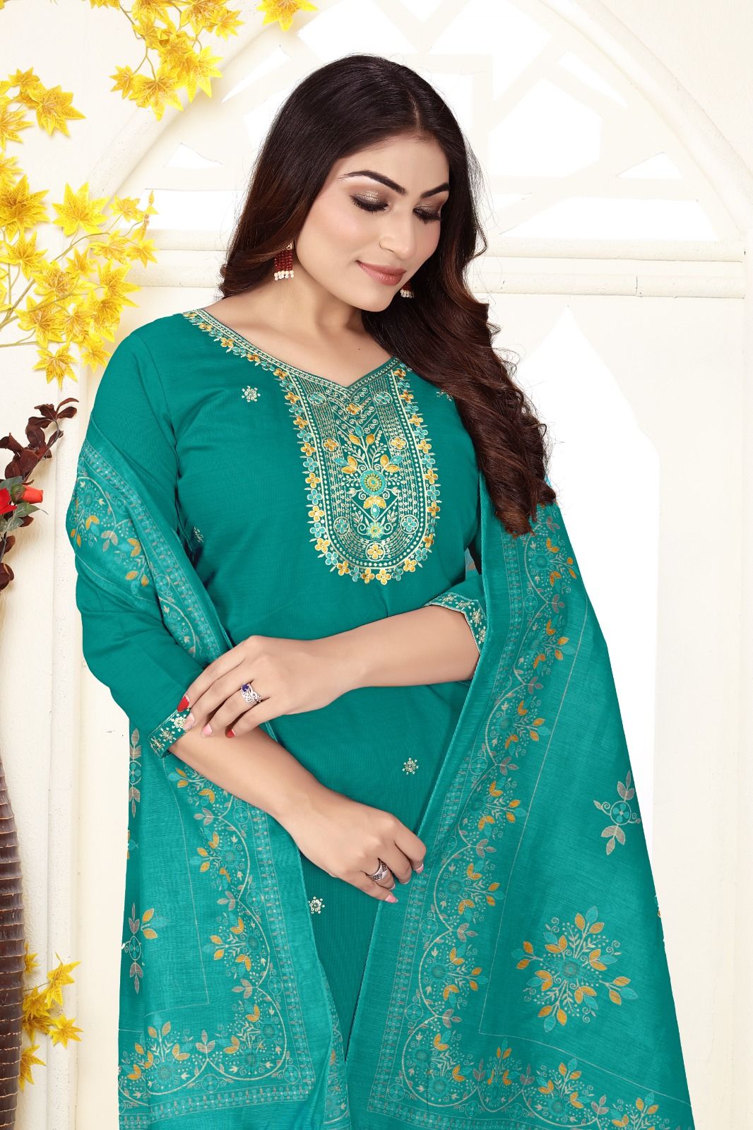 Home › Products › Embroidered Kurta Sets › Bottle Green Pure Cotton Embroidered Ladies Kurta Set