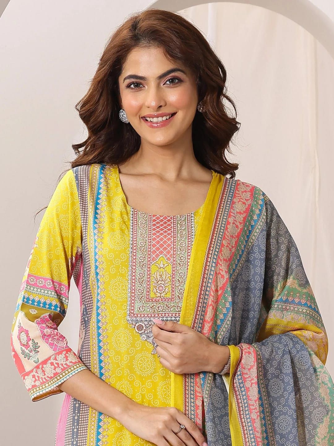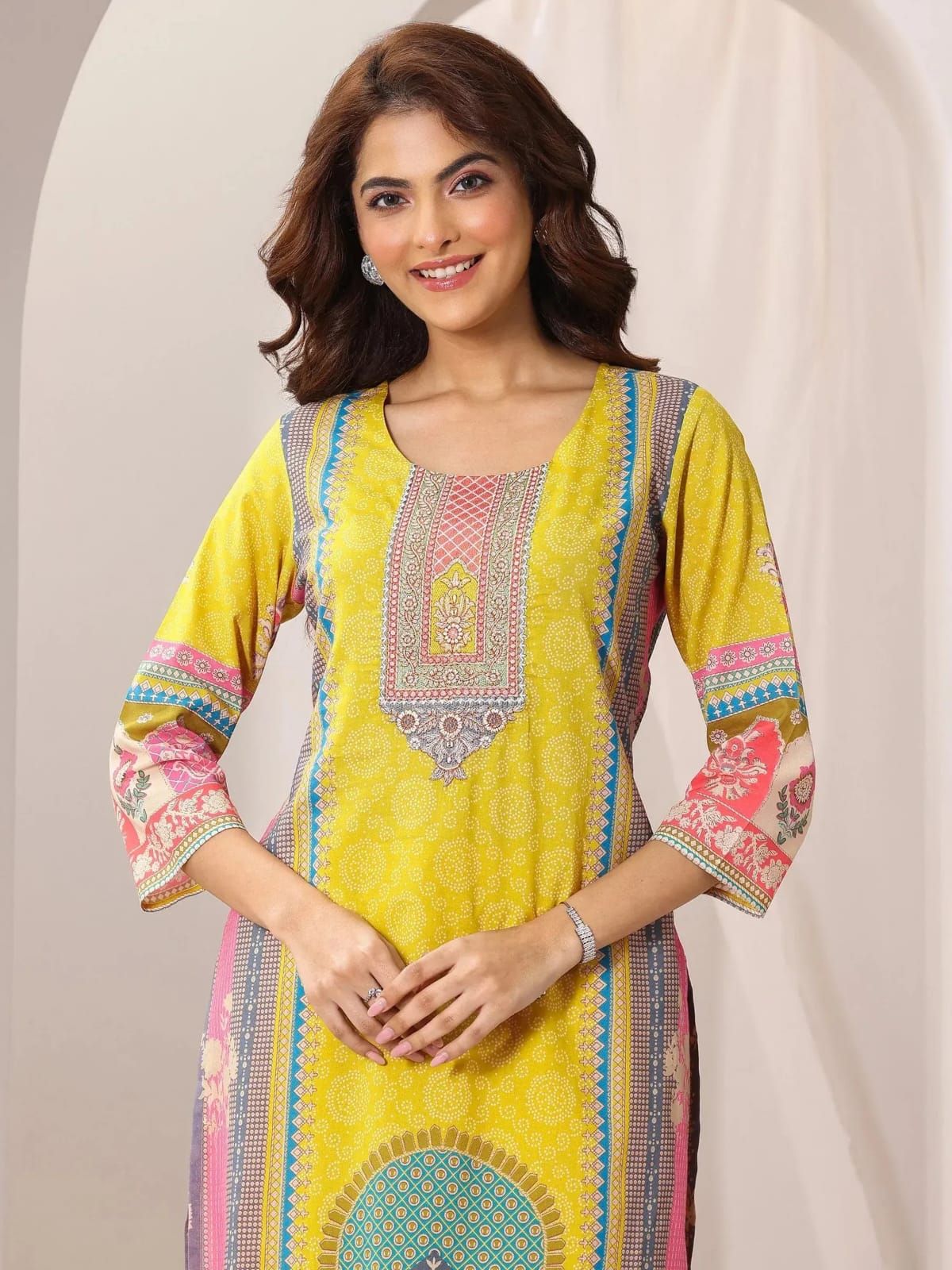 Leading Manufacturers, Exporters, Wholesaler and Trader of Dusty Blue A Line Printed Ladies Kurta Set, Maroon Pure Cotton Printed Ladies Kurta Suit Set, Pink French Crepe Printed Ladies Kurta Set and Yellow French Crepe Printed Ladies Kurta Set from Surat.